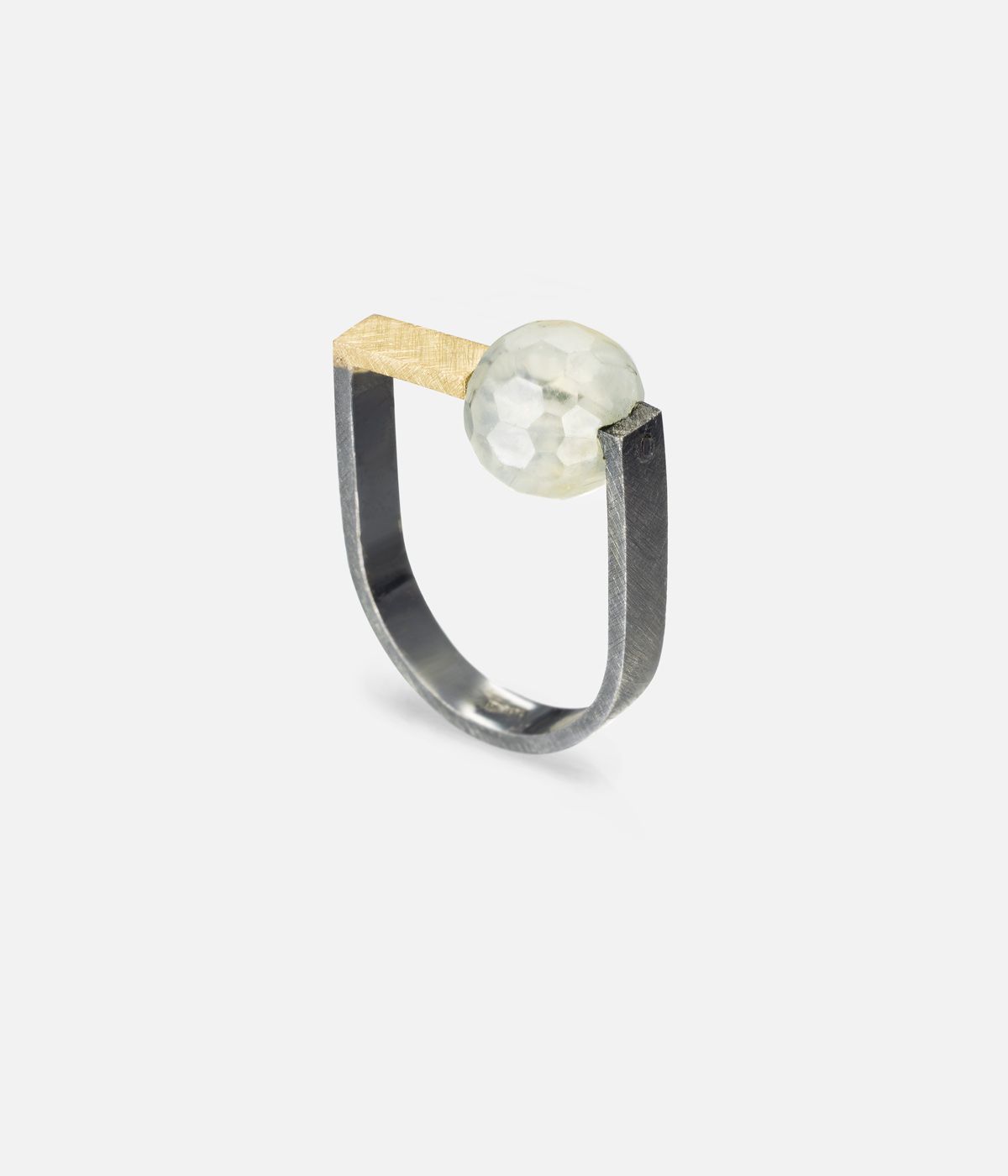 Diseñado por Luna Alba y elaborado a mano en nuestro taller, el anillo Lía combina plata oxidada y oro de 18 quilates en un equilibrio de contrastes.