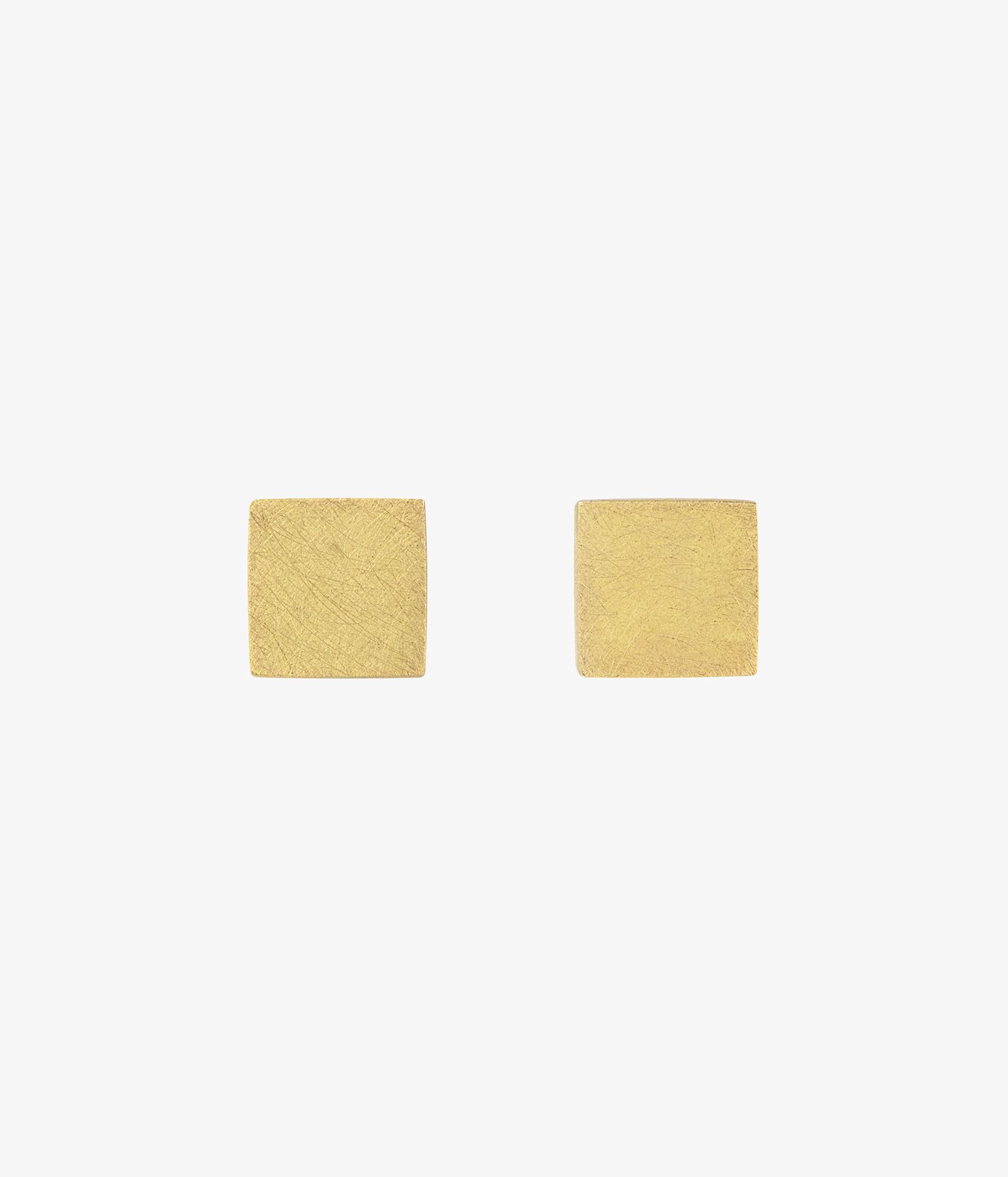 Gemelos rígidos de oro amarillo de 18 k diseñados por Pepe Alba en forma de cubo achatado y con acabado matizado cepillado.