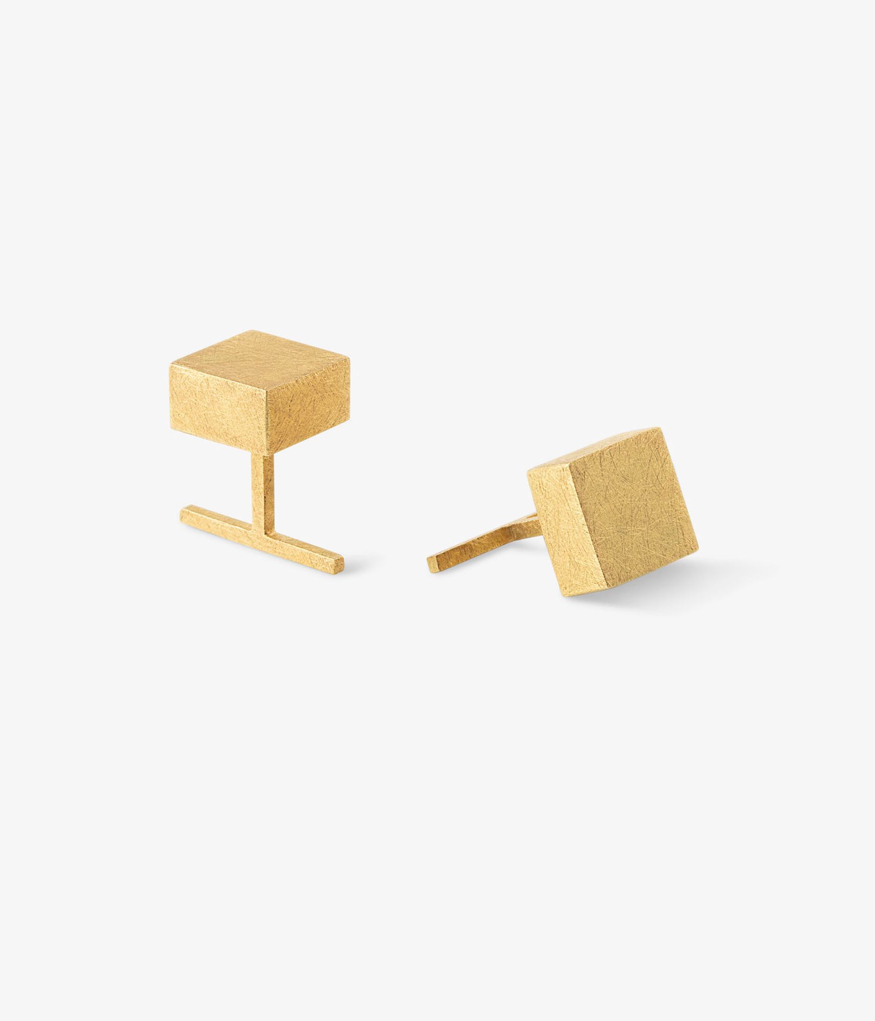 Un cubo achatado de oro matizado y cepillado emerge de tu camisa dando un aspecto modernizado y simplificado respecto a los clásicos gemelos a los que estamos acostumbrados.