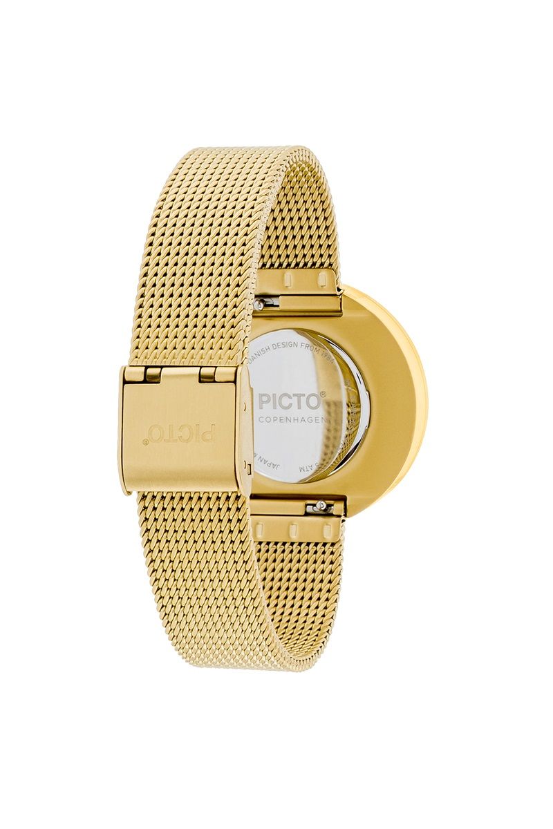 El PICTO 34 mm rojo canela / malla dorada combina una esfera cálida en tono rojo canela con una correa de malla de acero dorada, creando un reloj de pulsera refinado, luminoso y muy contemporáneo. Su formato de 34 mm aporta una presencia equilibrada y ligera en muñeca.