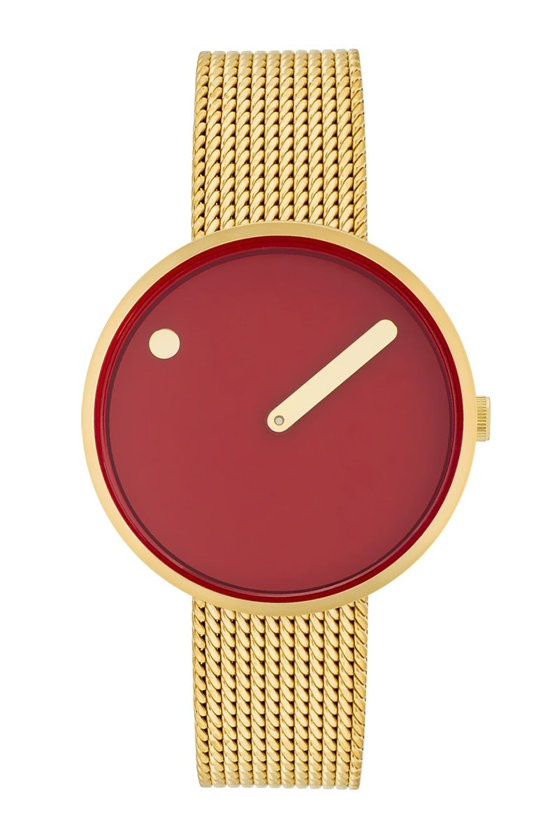 El PICTO 34 mm rojo canela malla dorada ofrece una combinación especialmente atractiva entre la profundidad de una esfera en tono rojo canela y la luminosidad de una malla dorada. El resultado es un reloj elegante, contemporáneo y con una personalidad muy definida, ideal para quienes buscan una pieza distinta dentro del minimalismo escandinavo.